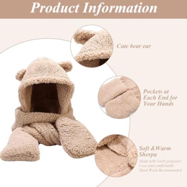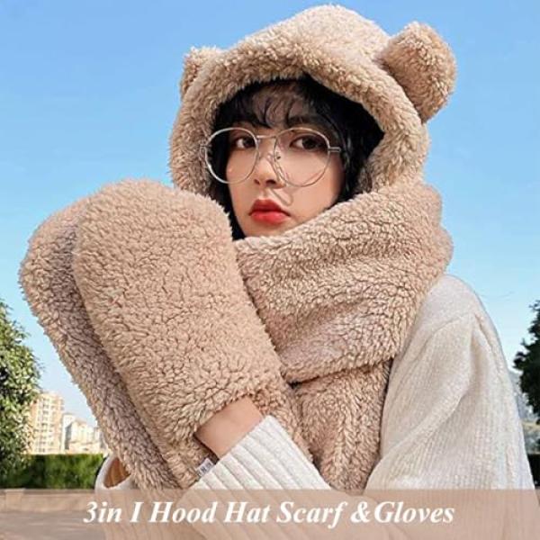 - ADORABLE BEAR SCARF HAT: This winter scarf hat features cute bear ears that add a playful and charming touch, making it not just functional but also a delightful fashion statement. It unique design blending the style and function, it would be a hat, a scraf and glove, giving you a warmth at any outdoor activities. The whimsical design will be a highlight for any outfit, making it more than a functional winter gear but also a winter fashion piece in wardrobe.