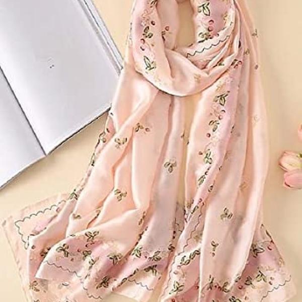 - This Pink with Green silk stole is soft and high-quality, adorned with a fashionable floral pattern. It's a versatile accessory for any occasion.