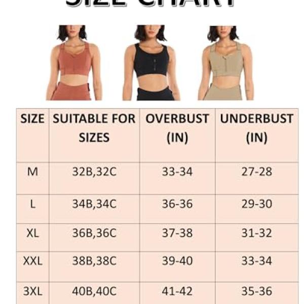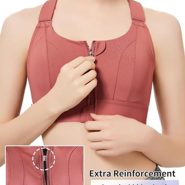- Easy On-Off Zip Front Design: High impact sports bras with a front zipper could be put on and take off in a second. The extra hook & loop clasp inside ensures the double security, prevents it from unzipping. The flap on the top prevents scratching skin. Also suitable for wearing as a post-surgery bra.