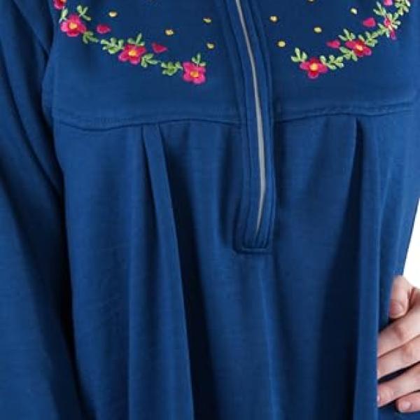 Women's Woolen Winter Wear Full Sleeve Woolen Solid Fleece Nighty, Maxi, Nightwear, (SBG-72) (Free Size, Turquoise Blue)
