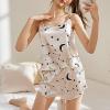 Womens, Polyester Babydoll Lingerie Bodysuit Swimwear Mini Chemise Top Short Wedding Bridal Nightdress With Top Shorts Strylish Prints Beige, Relaxed, Free Size