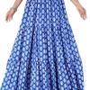 Floral Print Skirt for Women - 100% Cotton, Floor-Length, Elastic Waist, Stylish and Comfortable, Machine Washable, Perfect for Casual Blue