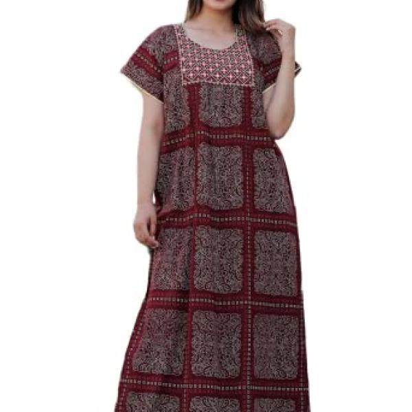 G4Girl Pure Cotton Embroidery Nighty for Women's | Night Gown | Nighty | Nightdress | Maxi | Sleepwear | Jaipuri Nighty | Nighties | Gown