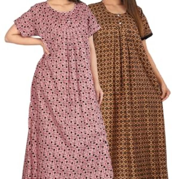 Kuruti B Sheets Nighty for Women Cotton Combo (Pack of 2) Nighty Gown Round Neck Short Sleeves Jaipuri Maxi Gown Printed Free Size