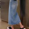 - Ageless Appeal: Suitable for both women and girls, the long denim pencil skirt captures an ageless aesthetic, making it a wardrobe essential that transcends generations.
