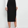 ALYNE Women's Elastic Waist Pencil Bodycon Midi Skirt - High Waisted with Side Slit Below Knee Length Elegance for Women