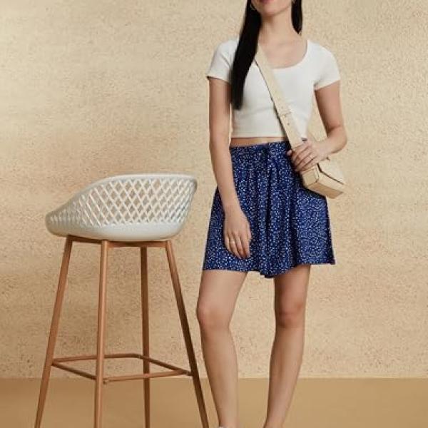 Rayon Flared Shorts (with Self Fabric Belt) (Available in Plus Sizes)