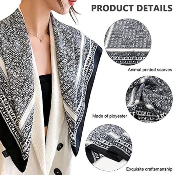 - FASHION SQUARE SCARF: This satin scarf is the perfect accent to any outfit. Whether in business, office, date, attending important meeting, or in daily life, home living, school, party, wedding, travel, casual occasion, etc. This print silk scarves can add you unique female charming and attraction.