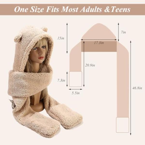 - ADORABLE BEAR SCARF HAT: This winter scarf hat features cute bear ears that add a playful and charming touch, making it not just functional but also a delightful fashion statement. It unique design blending the style and function, it would be a hat, a scraf and glove, giving you a warmth at any outdoor activities. The whimsical design will be a highlight for any outfit, making it more than a functional winter gear but also a winter fashion piece in wardrobe.