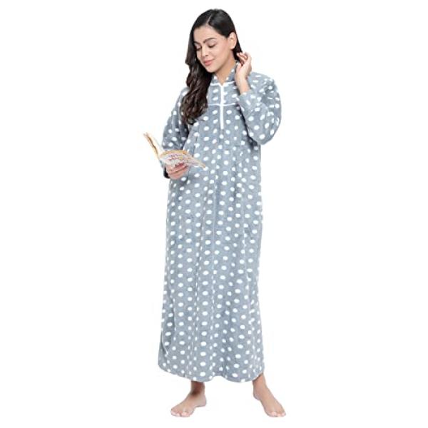 CIERGE Women's Woollen Dot Pattern Full-Length Maxi Nighty (Grey Free Size)