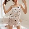 Womens, Polyester Babydoll Lingerie Bodysuit Swimwear Mini Chemise Top Short Wedding Bridal Nightdress With Top Shorts Strylish Prints Beige, Relaxed, Free Size