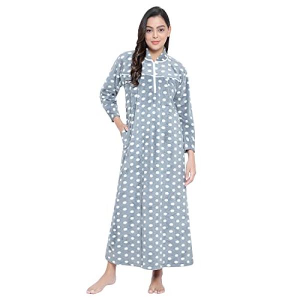 CIERGE Women's Woollen Dot Pattern Full-Length Maxi Nighty (Grey Free Size)